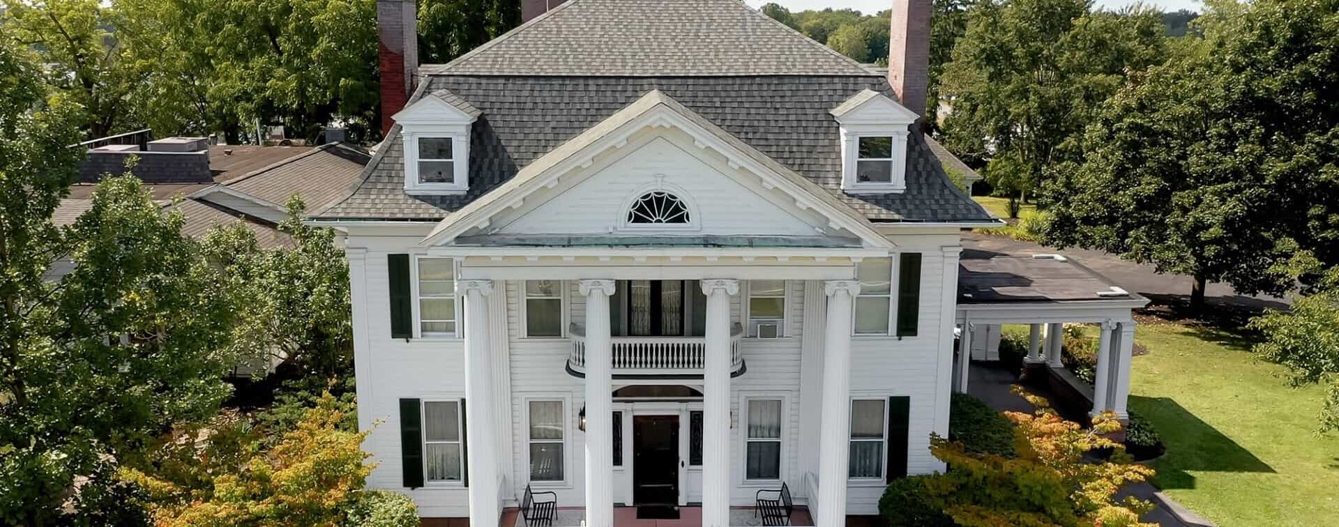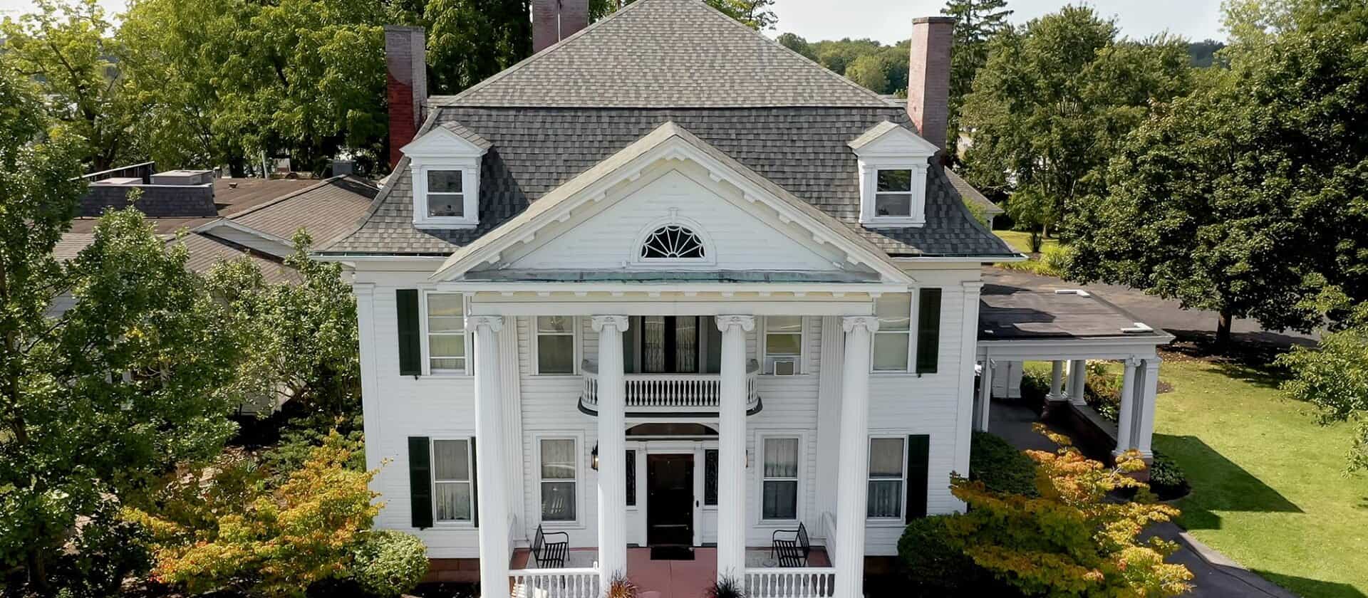The Manor is a Greek Revival home that was originally the residence of William Ormrod, a prominent businessman and politician. The three-story, 30-room residence was built in 1905 and is one of the most beautiful estates in New York.