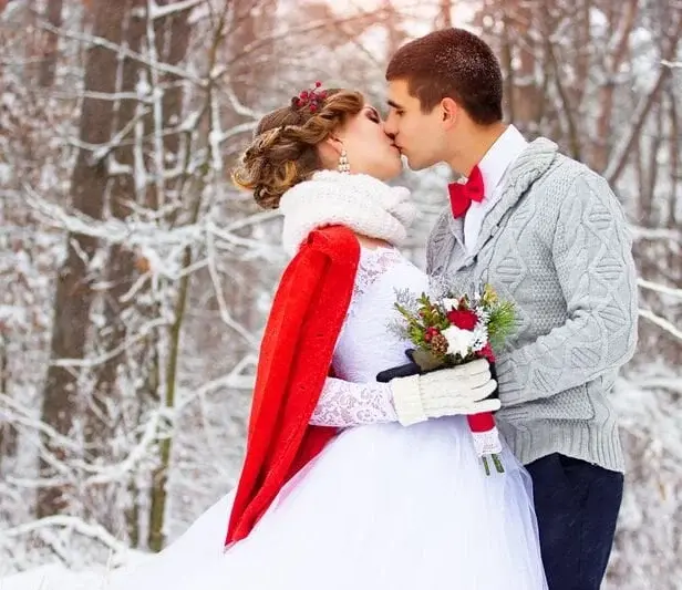 The availability of certain foods and flowers will change in the winter months. Work with your caterer to craft a seasonal menu. Your florist may recommend wintery flowers such as white roses, calla lilies, and poinsettias, but the decision is all yours.
